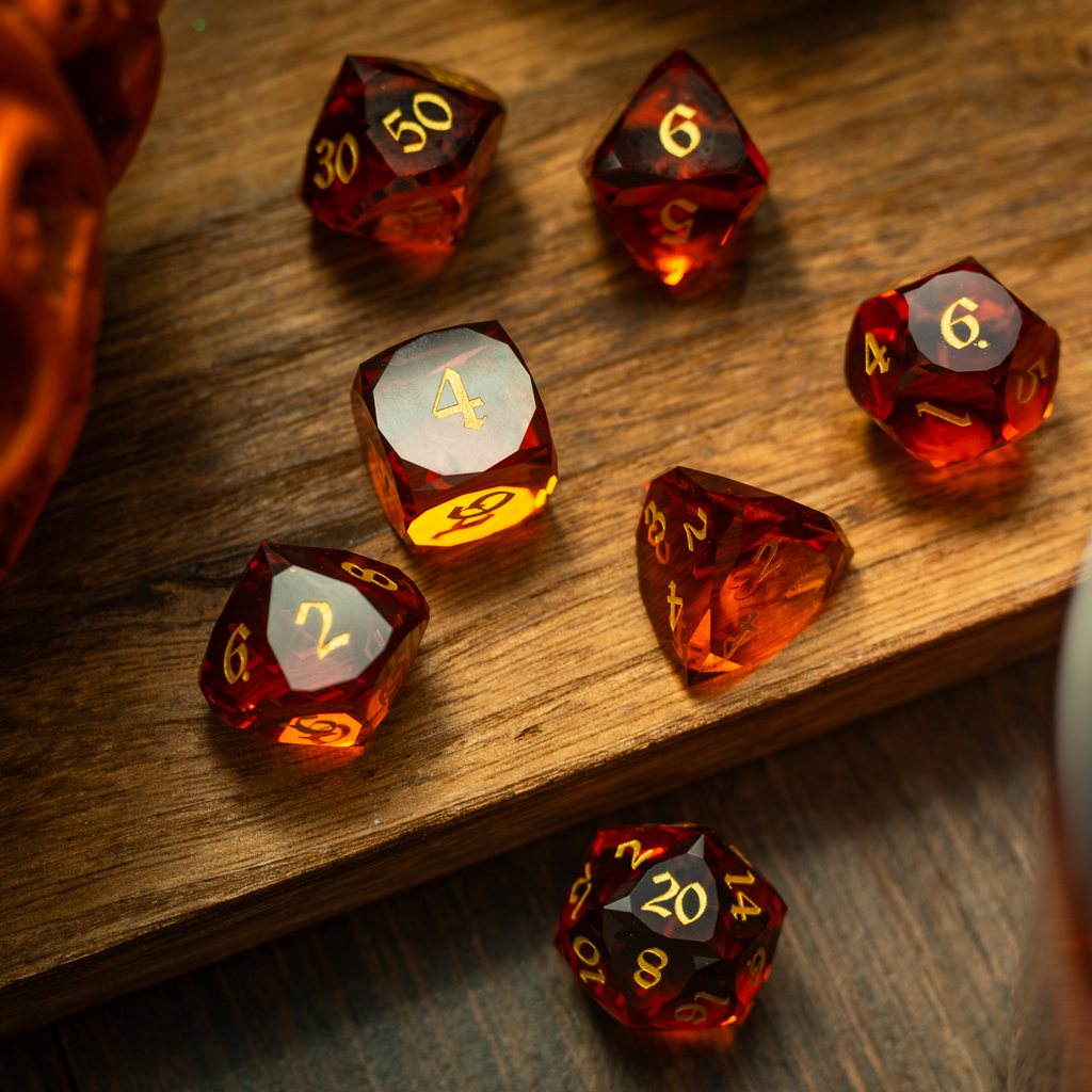Dwarf Cut Gold Gemstone Glass Premium DND Dice Set