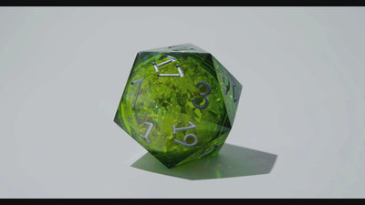 Unleash the power of nature with this mesmerizing jumbo d20 liquid core dice, overflowing with a swirling green liquid core! This isn't just a die, it's a portal to the mystical realm of Alveran, where elemental magic surges and ancient secrets whisper. With every roll, feel the energy of earth, wind, fire, and water coursing through your fingertips.